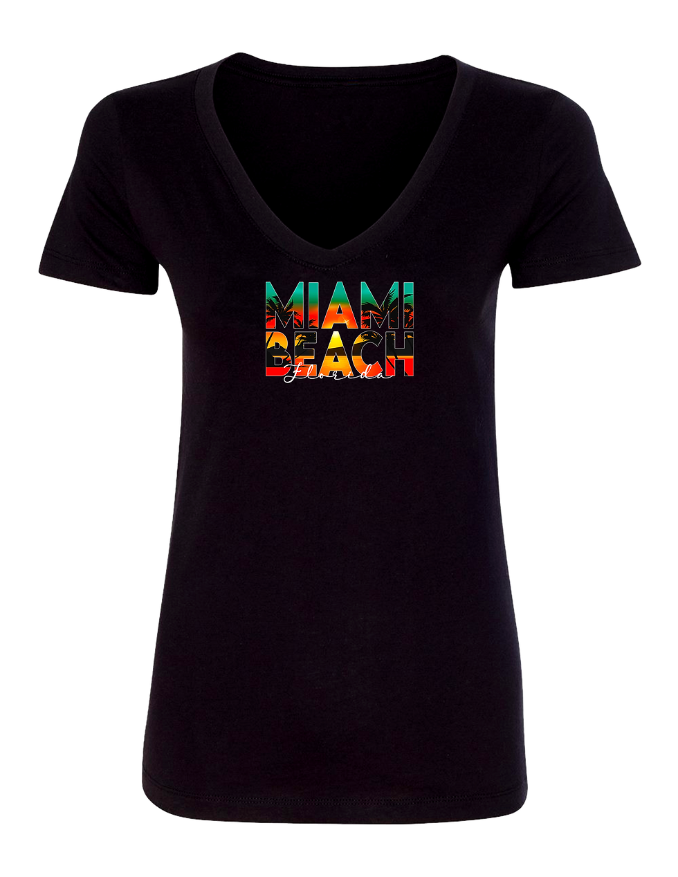 T-SHIRT COL EN V "MIAMI BEACH"